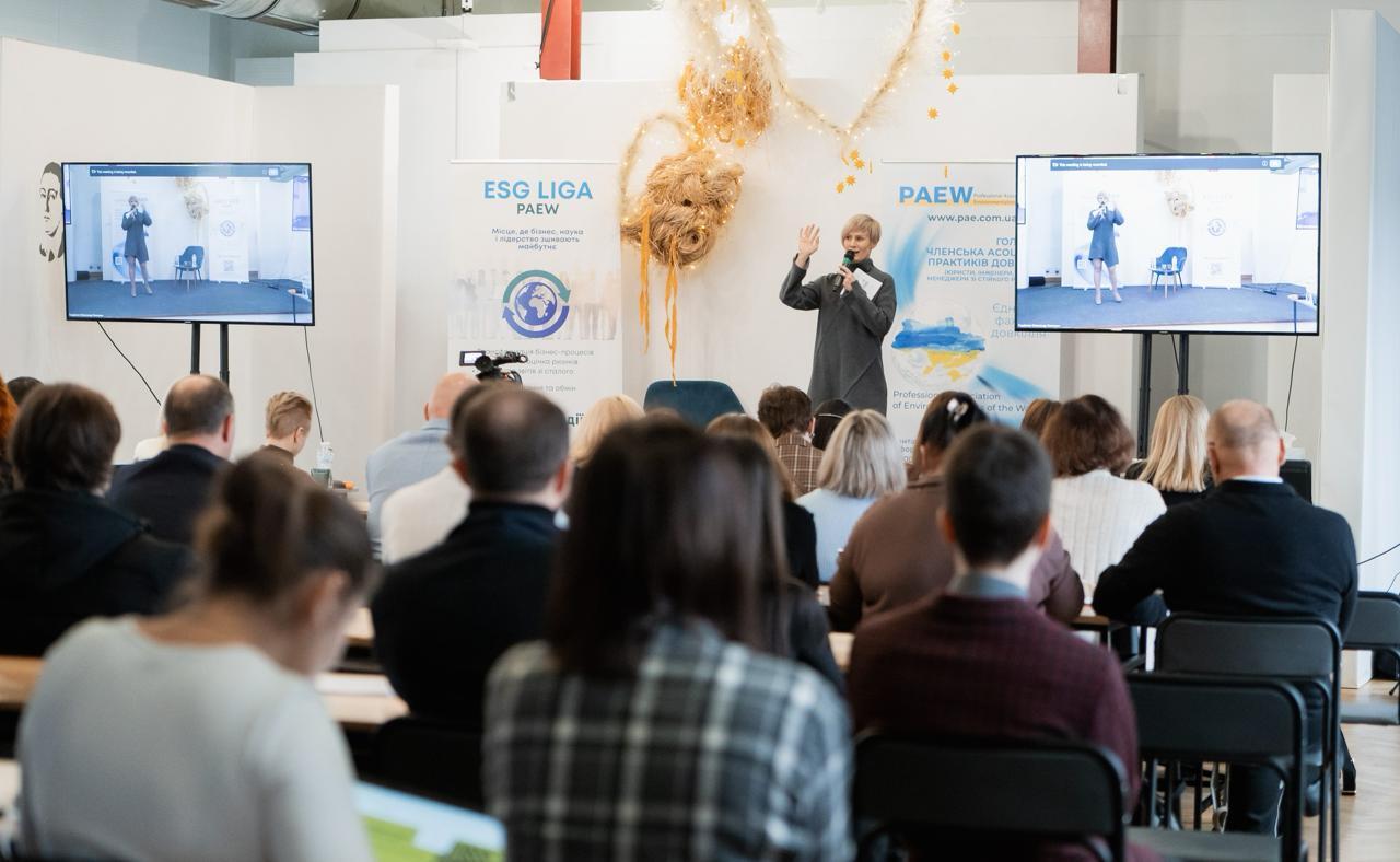 One of the topics for discussion was the issue of forming the state pool in wartime. PAEW President Liudmyla Tsyhanok presented the ESG (Environmental, Social, Governance) principles and emphasized their remaining significance right now: future reconstruction requires responsible decisions and sustainable approaches.