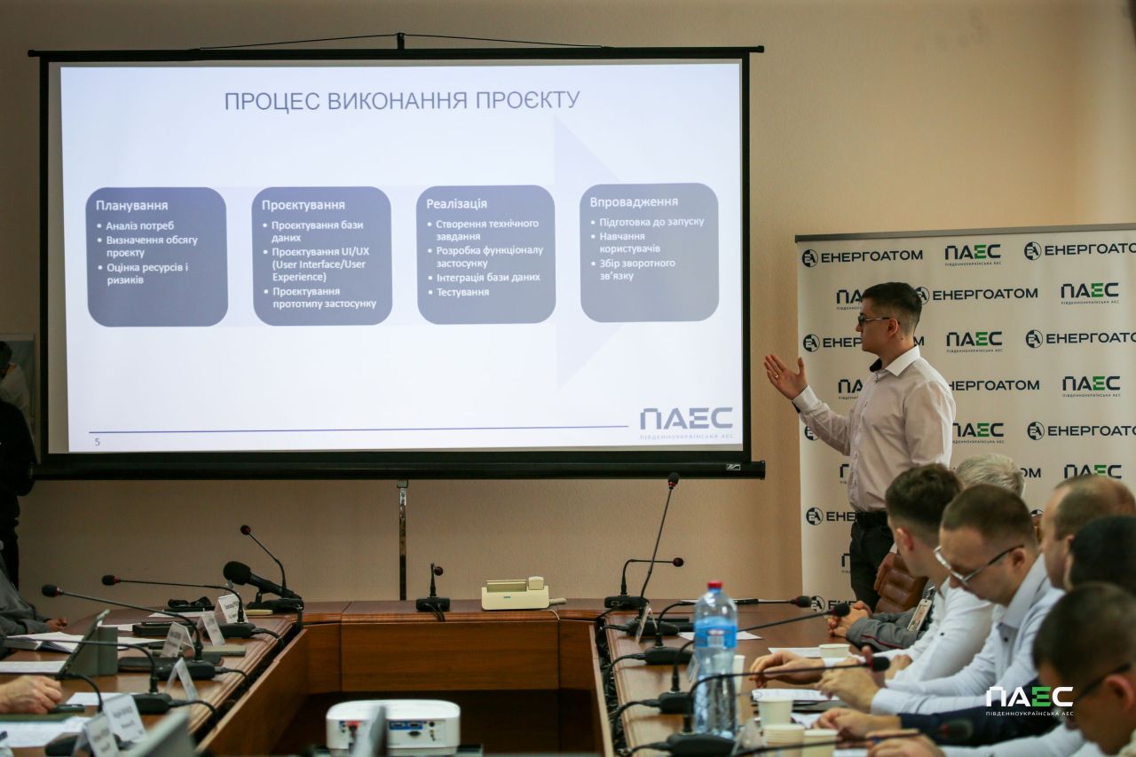Начальник зміни реакторного цеху № 1 (РЦ-1) Олександр Мартищенко виступив із темою підвищення безпеки в роботі АЕС методом заміни регуляторів підживлення продування 1 контуру енергоблоків № 1, № 2 ПАЕС. Артем Пікус, начальник зміни черги атомної електростанції групи технічного керівництва, запропонував впровадження електронного графіка-календаря для випробування захистів і блокувань обладнання. Ігор Гринюк, провідний інженер з експлуатації устаткування атомної електростанції РЦ-1, представив проєкт заміни повітроохолоджувачів рециркуляційних систем вентиляції. Особливу увагу членів комісії привернула інноваційна розробка Дмитра Салагора, інженера-програміста служби інформаційних технологій. Його тема «Розробка системи автоматизації технічної підтримки за клієнтськими зверненнями» має потенціал стати першою впровадженою системою такого типу на АЕС України. Антон Константинов, інженер-електронік з ремонту й обслуговування автоматики та засобів вимірювань ЦТАВ запропонував створення електронної бази даних ремонтної та звітної документації. Віталій Іваниця, майстер з ремонту устаткування електричного цеху, виступив із темою перевірки правильності підключення вторинних кіл трансформаторів струму. Олександр Петренко, майстер з ремонту, налагодження, перевірки та пуску устаткування атомних станцій ЦТАВ, представив автоматизацію процесу переміщення блоків детектування потоку нейтронів (АКНП) під час підготовки до перевантаження палива. Геннадій Пархоменко, майстер з ремонту парогазотурбінного устаткування енергоремонтного підрозділу (ЕРП) презентував створення тренажера для ремонтного персоналу на базі навчально-тренувального центру ПАЕС. А майстер з ремонту, налагодження, перевірки та пуску устаткування атомних станцій ЕРП ЦРРУ Олександр Суворов запропонував удосконалити пристрій для огляду та вилучення сторонніх предметів із корпусу реактора.
