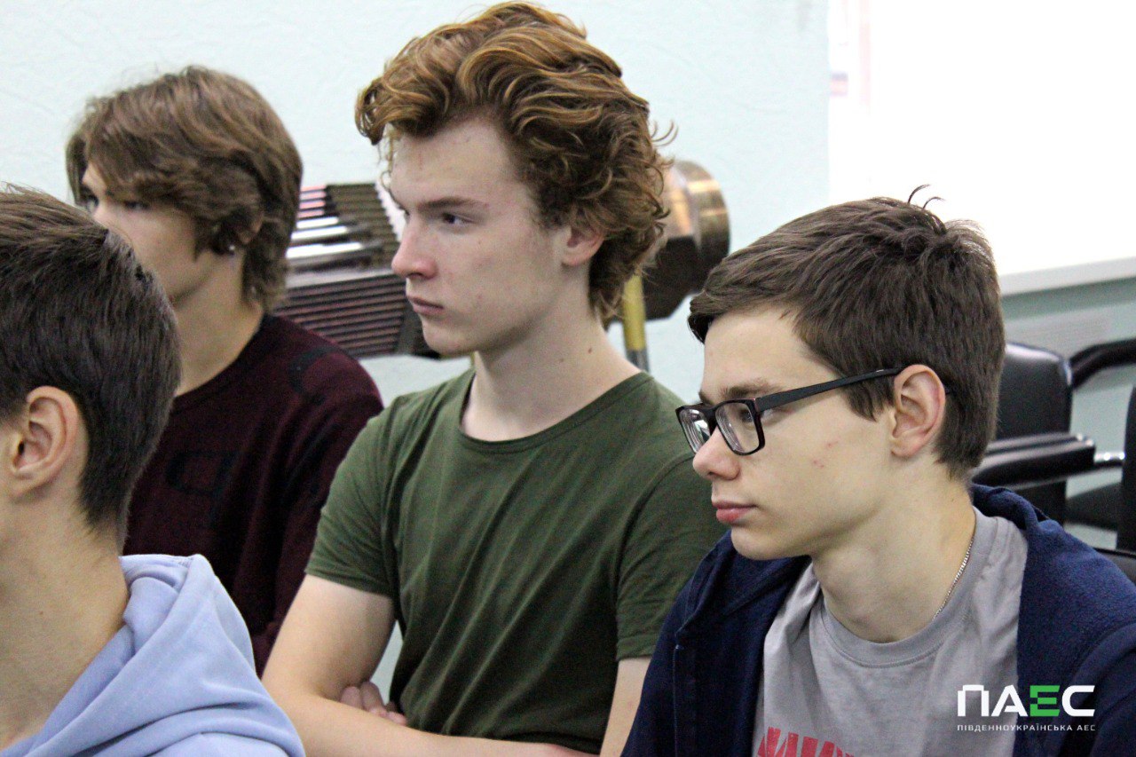 Старшокласники з цікавістю слухали про паливний цикл атомної енергетики, зокрема про процеси видобутку урану та використання ядерного палива. Особливу увагу було приділено питанням радіаційної безпеки, природним джерелам випромінювання та методам контролю радіаційного фону в Україні.
