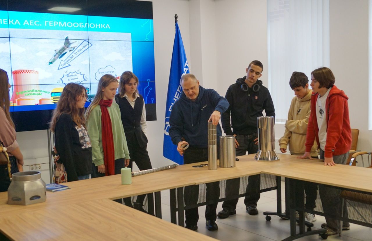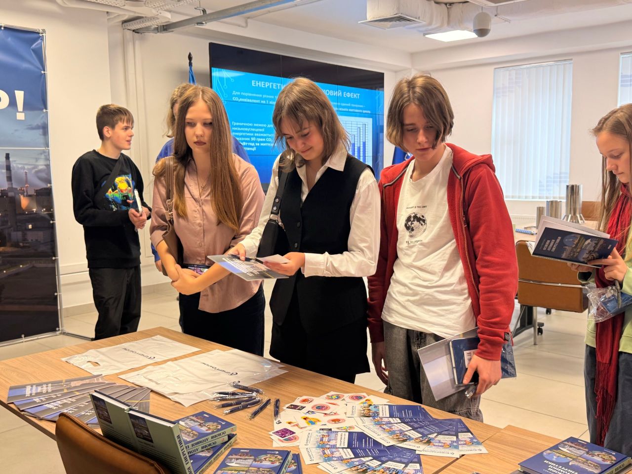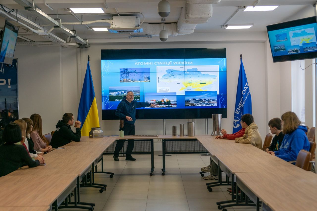 Today, a special event has taken place at the office of NNEGC “Energoatom” within the framework of traditional educational activities. Children of the Zaporizhzhia NPP employees – high school students who were forced to leave Energodar due to the occupation and now live in Kyiv with their families, have visited the company.