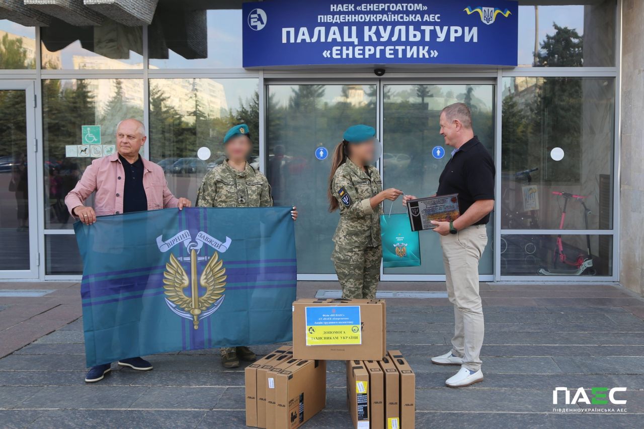 Завдяки благодійній акції «Допомога захисникам України», яка діє на Південноукраїнській АЕС з початку великої війни, на придбання комп’ютерної техніки для психологічної підтримки морських піхотинців вдалося закумулювати майже 200 тисяч грн. На знак вдячності військові психологині подарували колективу ПАЕС прапор своєї частини і вручили Подяку за підтримку українських захисників і захисниць, яку отримав заступник генерального директора ПАЕС з персоналу Сергій Котельник..