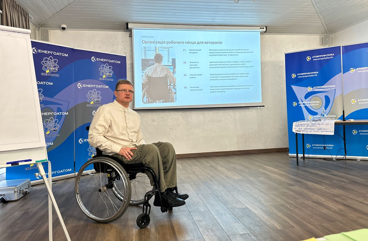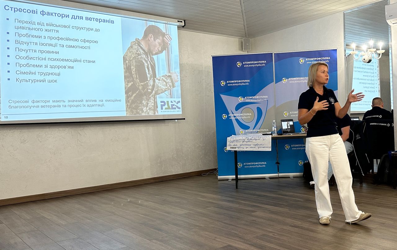 Серед тренерів – фахівці з психології, юриспруденції та профспілкової роботи, військові. Вони акцентували увагу на діяльності профспілкових організацій у воєнний час, адаптації ветеранів у колективах, підтримці осіб з інвалідністю та учасників бойових дій, а також на питаннях працевлаштування та перекваліфікації захисників. Зокрема, провідний психолог відділу розвитку персоналу РАЕС Оксана Саворона висвітлила тему «Психологічні аспекти професійної інтеграції ветеранів».