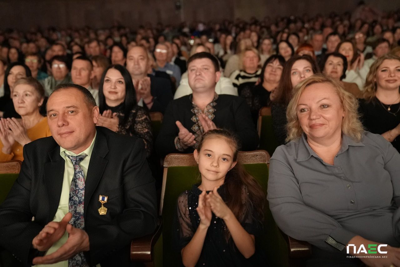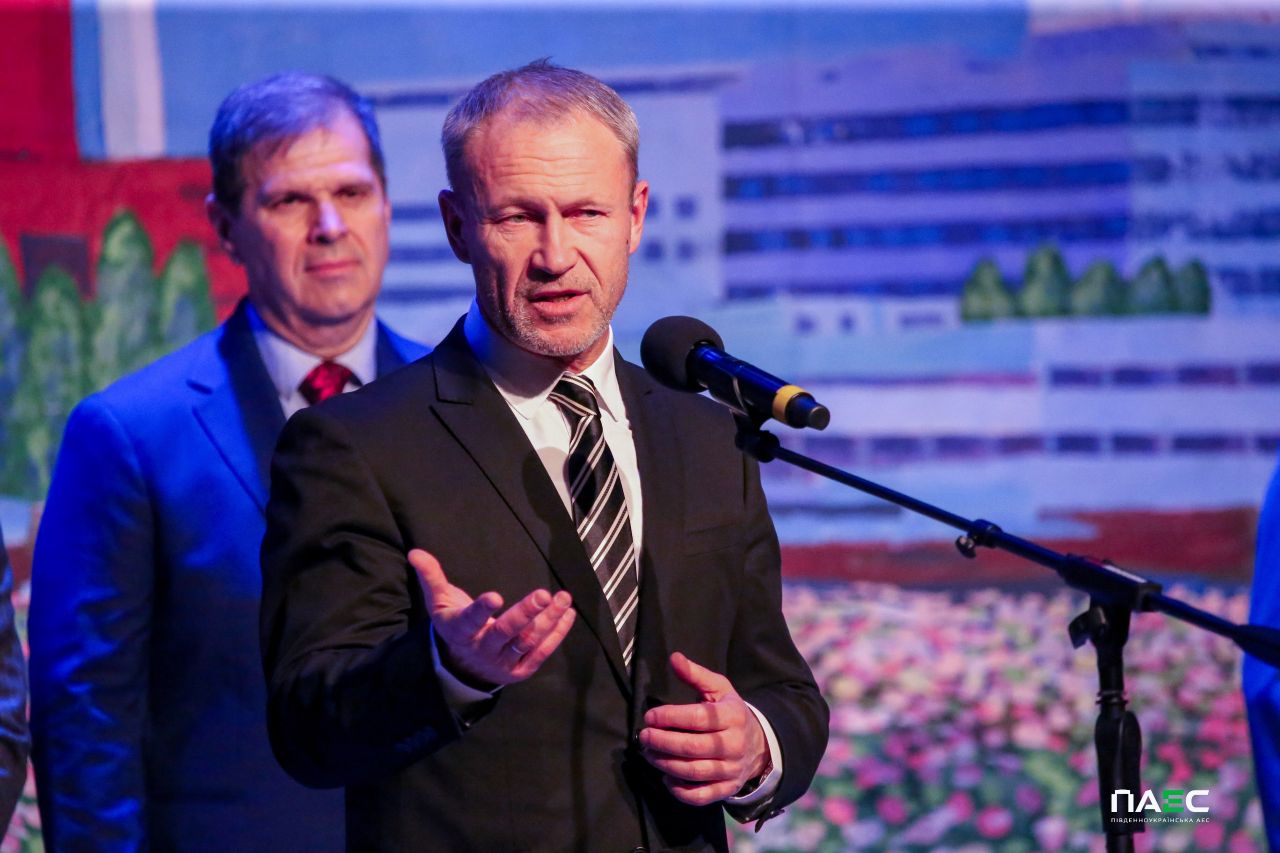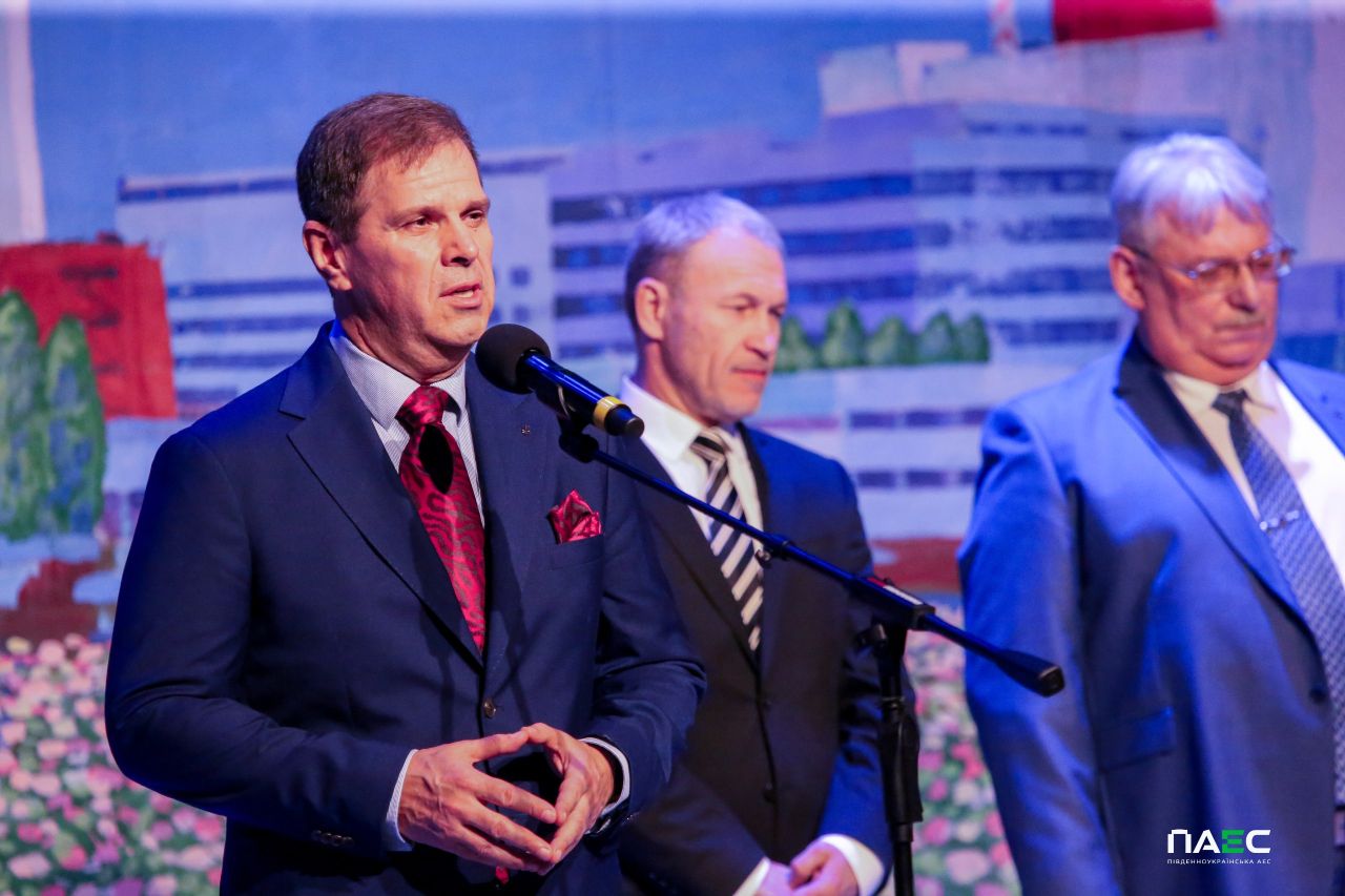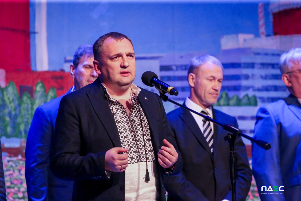 «У такий тяжкий для країни час, на жаль, приводів для святкування мало, однак в атомників є безліч приводів для гордості», – наголосив зі сцени виконавчий директор з персоналу АТ «НАЕК «Енергоатом» Богдан Шмигельський. Він привітав енергетиків і акцентував, що Компанія «Енергоатом» генерує більше половини електричної енергії в Україні і забезпечує енергетичну безпеку держави, підготувала свої енергоблоки до роботи взимку, розвиває соціальні об’єкти, збільшила зарплату персоналу і виплати своїм мобілізованим працівникам, яким зберігається середня заробітна плата. Він нагадав, що у 2025 році атомна компанія перерахувала понад 2 млрд грн військової допомоги у вигляді матеріальних цінностей, і зазначив, що наразі тисяча працівників Компанії захищає державність України у лавах ЗСУ, а також, вшанував Героїв, яких атомна родина втратила на війні.