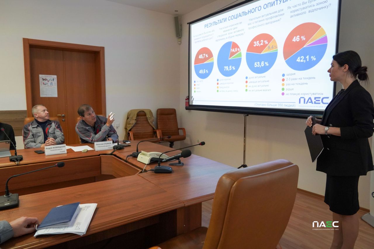 Єдина дівчина з команди спецрезервістів - Олена Іващенко, технікиня управління виробничо-технічної комплектації, взяла в розробку тему із соціальної сфери – профілактика професійного вигорання через створення зон активного відпочинку.