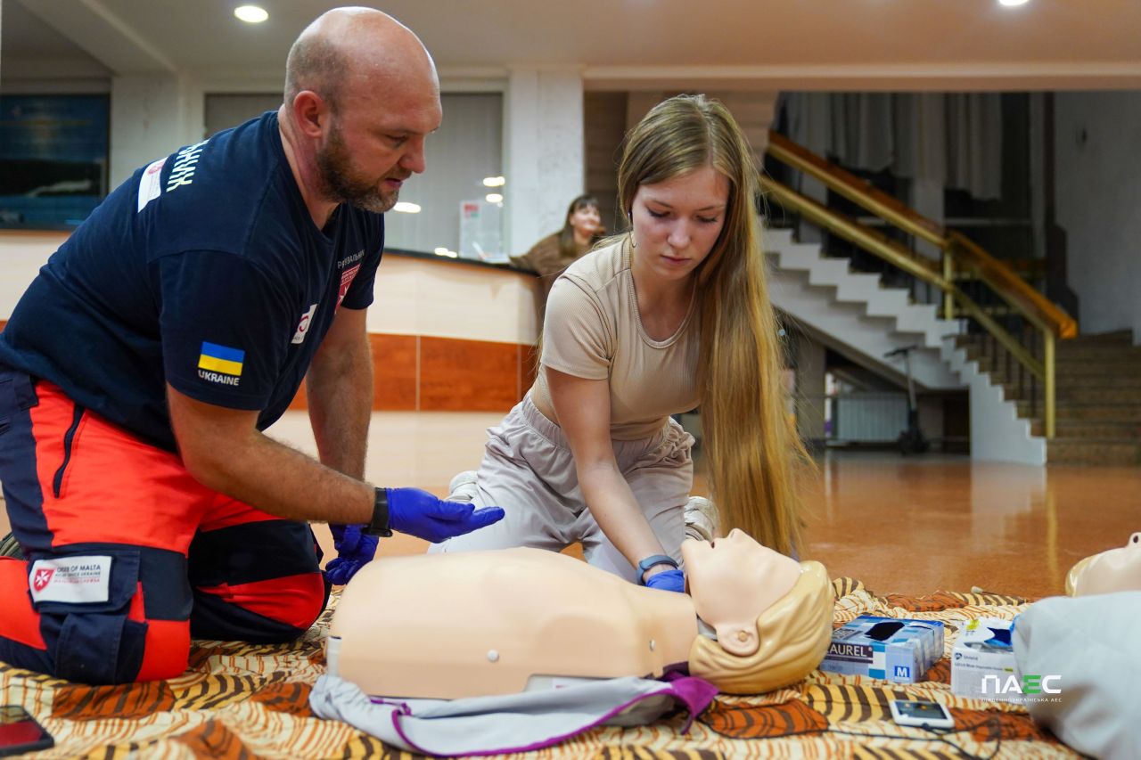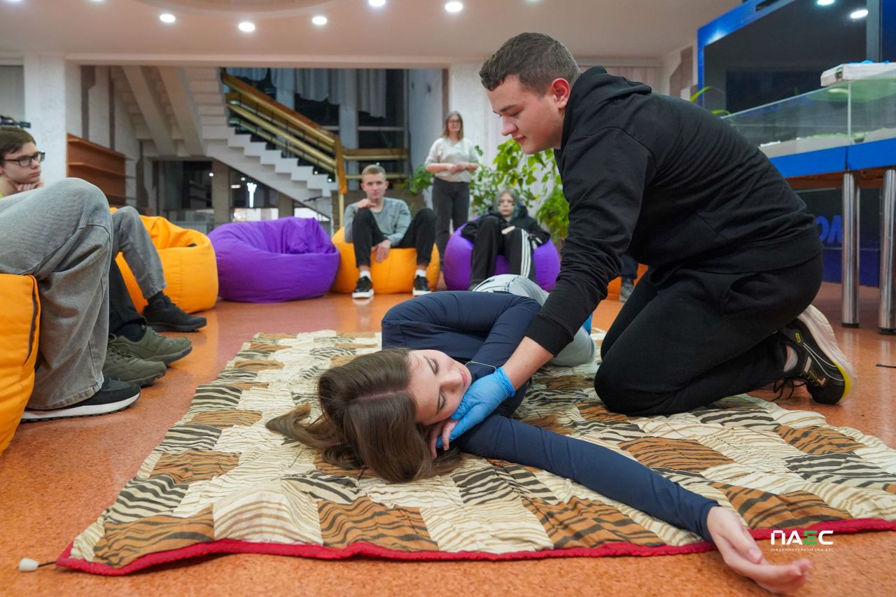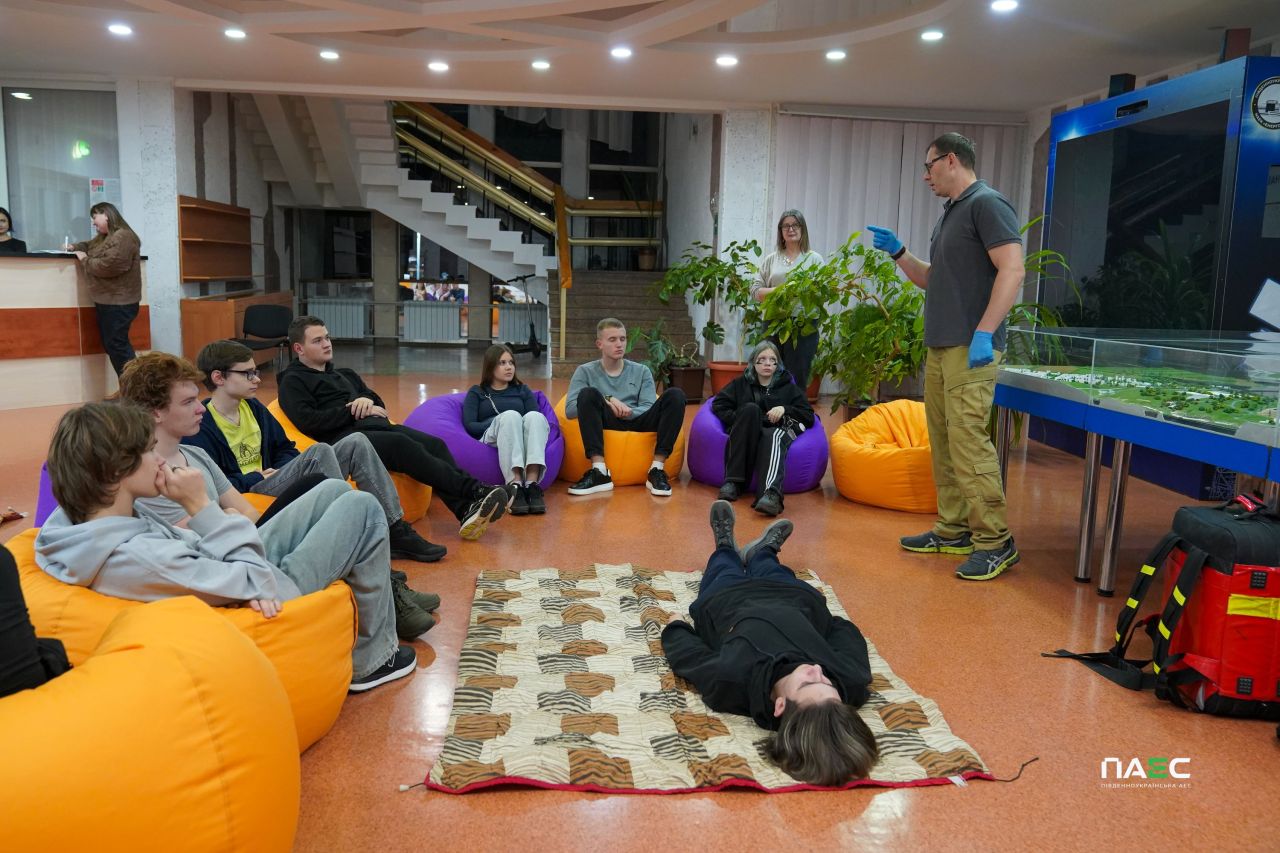 На Південноукраїнській АЕС триває реалізація освітнього проєкту «Атомна академія ПАЕС». 12 листопада відбулося чергове заняття. Цього разу учасники пізнавальних заходів «АЕС на долоні» за підтримки волонтерів-рятувальників місцевого осередку Мальтійської служби допомоги вчились надавати домедичну допомогу.