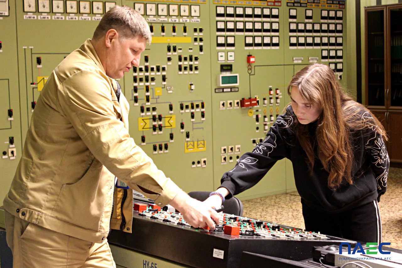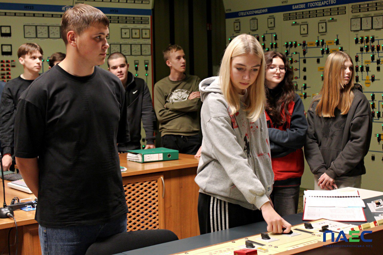 Під час відвідин учні відчули атмосферу відповідальності оперативного персоналу блочного щита управління (БЩУ), який контролює роботу атомного енергоблока. Повномасштабний тренажер є точною копією реального щита управління та дозволяє моделювати будь-які ситуації, що можуть виникнути під час експлуатації обладнання.